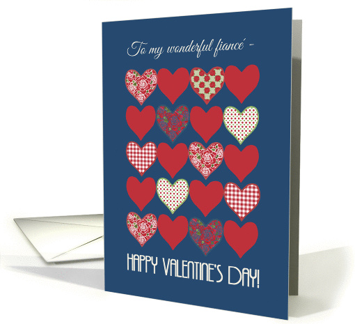 | Artist Notes: | A chic Valentine's Day greeting card for a Fiance, with rows of hearts filled with red rose patterns, against a deep blue background. |