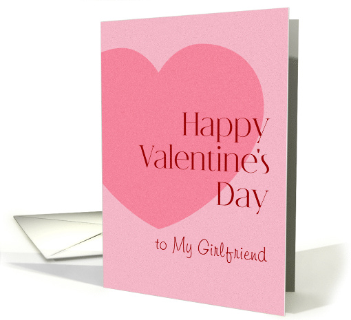 | Artist Notes: | Your girlfriend will adore this contemporary style Valentine card embellished with an offset heart in soft pink on a lighter pink backdrop featuring a bit of digital grain for modern flair. Vivid red text is easily customized. |