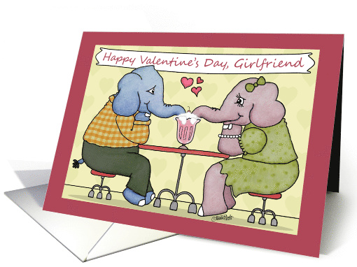 | Artist Notes: | ©Christie Black. If you and your girlfriend love elephants this is the perfect Valentine! Two elephants sit in a soda shop and share a milkshake with each of their trunks in the same glass. |
