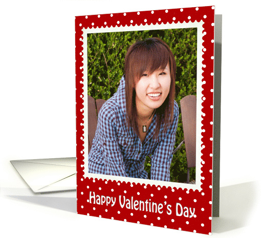 | Title: | Valentine from both of us stamp photo frame with polka dots on red |