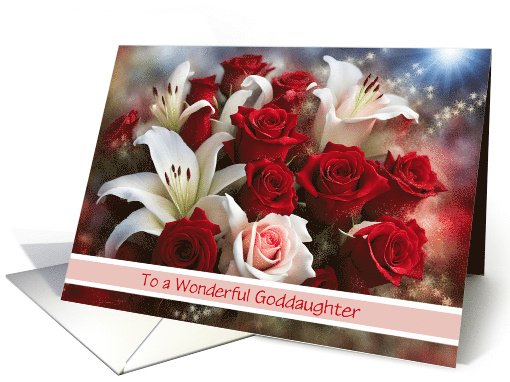 Artist Notes: | Share heartfelt wishes this Valentine's Day with your goddaughter through a beautiful floral card adorned with roses and lilies. |