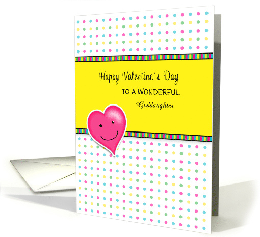 Artist Notes: | CUSTOMIZE THE FRONT AND INNER VERSE of this Happy Valentine's Day greeting card for Goddaughter with illustration of a pink heart with smiling face. Relationship can be changed to any relationship or name. |