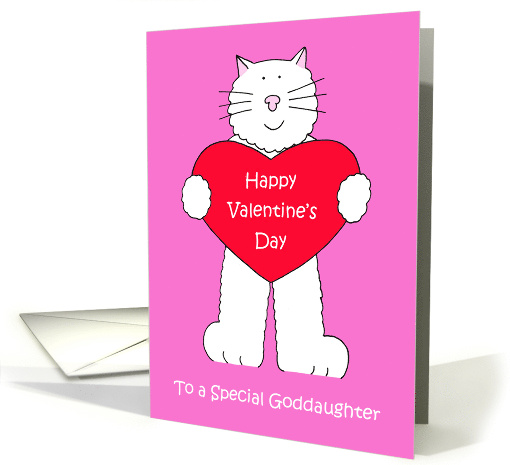 Title: | Happy Valentine's Day Goddaughter Fun Cartoon Cat with Heart |