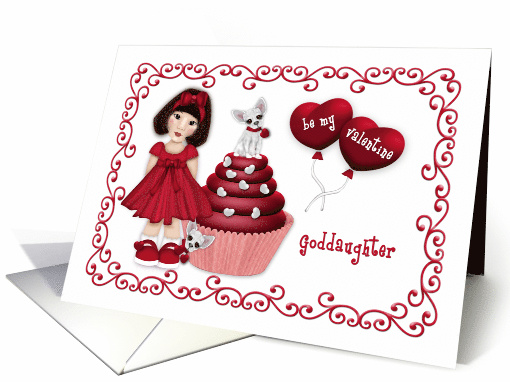 Valentine for a Asian Goddaughter Girl Puppy on a Cupcake Hearts