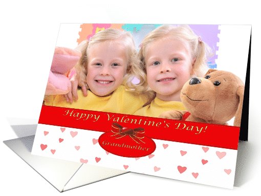 | Title: | Valentine's Day Photo Card for Grandmother, Pink Hearts and Red Bow |