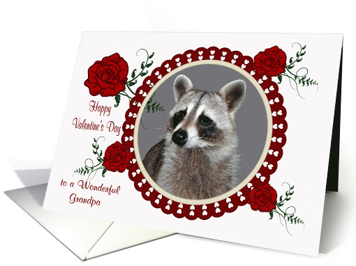 | Title: | Valentine's Day to Grandpa a Raccoon in a Heart Frame with Roses |