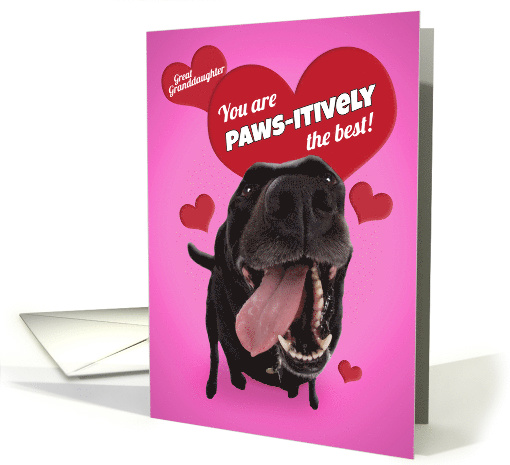 These hearts floating around a cute photograph of a happy black dog on a vibrant pink background is an adorable way to let your great granddaughter know that you are thinking of her when you wish her a Happy Valentine's Day!
