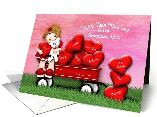 Valentine for Great Granddaughter with Teddy Bear in Wagon with Hearts
