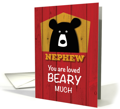 Nephew Valentine Bear Wishes on Red Wood Grain Look