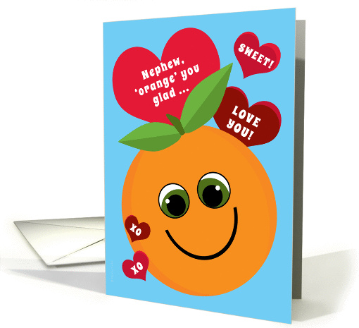 Nephew Valentine's Day Funny Smiling Orange Red Hearts on Blue