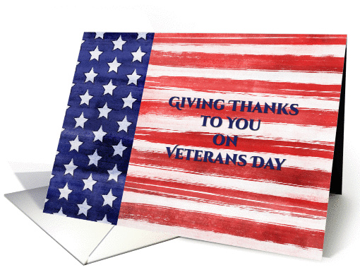 | Artist Notes: | A patriotic thank you card for a veteran with an American flag in a digital watercolor style with blue thank you text. |
