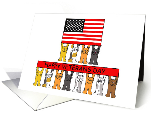 | Title: | Happy Veterans Day Cartoon Cats with Banners and a USA Flag |