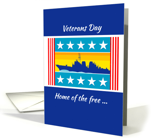 | Title: | Veterans Day Thank You Naval Military Ship with Blue Background |