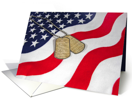 | Title: | Veterans Day military dog tags on flag with U.S. Constitution |