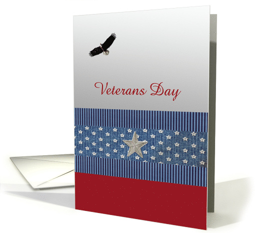 | Artist Notes: | Eagle Flying on Silver Background & Big Silver Star, Veterans Day, Custom Text. Patriotic card is sure to please the Courageous Veteran. Custom Text Allows you to add the name of the person. Inside verse: Thank you for your great Sacrifice and Service. We honors those who served the United States in all wars |