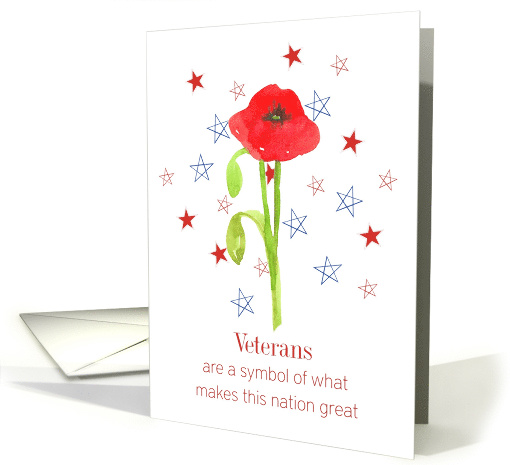 | Artist Notes: | A card in honor of Veterans on Veterans day to remember those who fought and helped in the war featuring a bright red poppy flower with stars in red, white, and blue. |