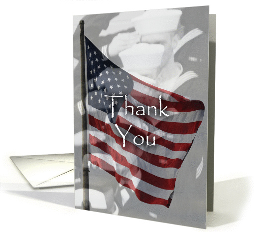 | Artist Notes: | A Veteran's Day Thank You card that any military member would like to receive with a black and white military photo of sailors saluting, a US flag in color over the black and white. |