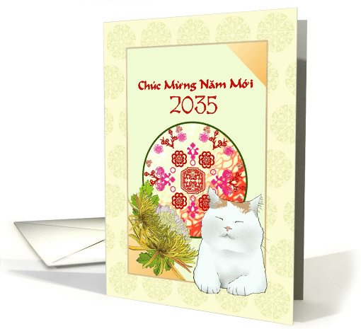 Vietnamese Year of the Cat 2035 Abstract Floral Embellishment Cute Cat