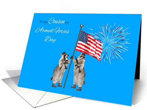 | Title: | Armed Forces Day To Cousin, armed raccoons with a flag and fireworks |