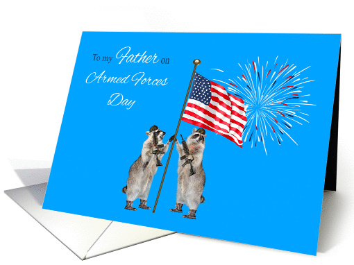 | Title: | Armed Forces Day to Father, armed raccoons with a flag and fireworks |