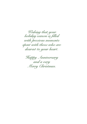 A happy anniversary on Christmas day card with a charming forest scene with woodland animals and a log cabin.