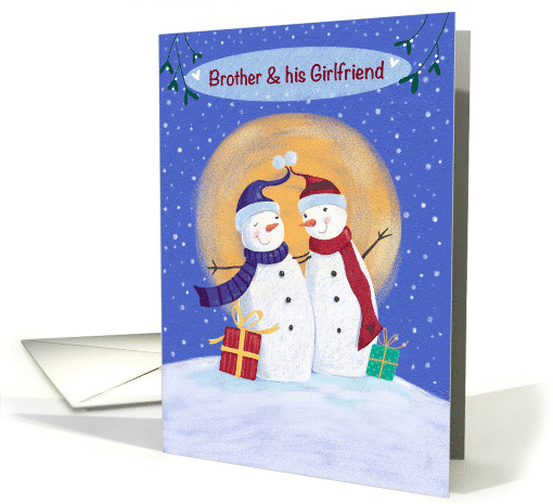 | Artist Notes: | Adorable couple of cheery snowmen/people on this Brother and his Girlfriend Christmas card, all printed on a glossy quality card. ©DaleSimpson |