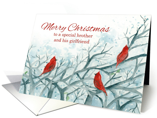 | Title: | Merry Christmas Brother and Girlfriend Cardinal Birds In Trees |