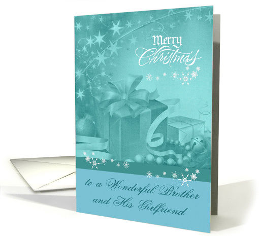 A lovely design for your brother and his girlfriend featuring beautiful Christmas presents, ribbons, bows, stars, ornaments and a pretty swirl of snowflakes on a delicate blue, textured background with white fancy text. Sure to let them know how special they are to you. The inside message is May your holiday season be as special as the two of you and your New Year be filled with lots of love and happiness! Inside can be personalized if you wish to give it your own personal touch. Design by Laurie Schneider, elements by Diana'z Designz. Fun facts about ribbon; Ribbons were first manufactured in France as early as the 11th century. In the Middle Ages, peddlers traveled throughout Europe selling exotic ribbons woven with gold and silver thread, made from silk and other rare fabrics from the Orient.
