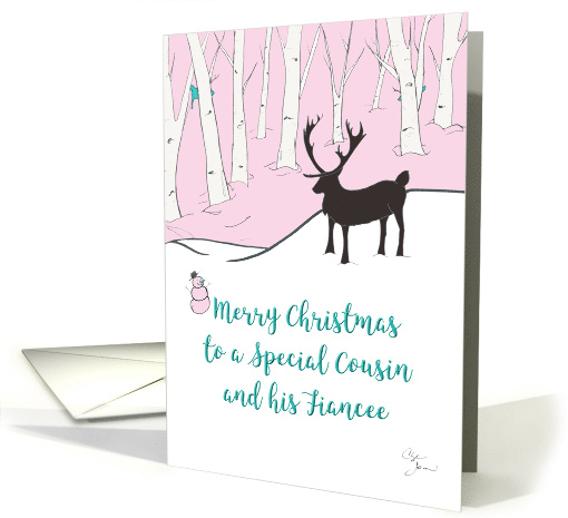 Merry Christmas Cousin and Fiancee Whimsical Reindeer Pink Forest
