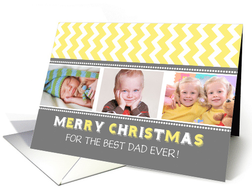 | Title: | 3 Photo Merry Christmas Dad Card - Grey Yellow Chevron |