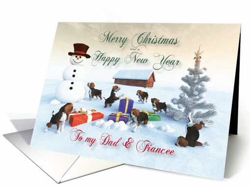 | Title: | Beagle Puppies Christmas New Year Snowscene Dad & Fiancee |
