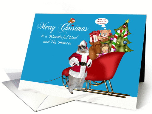 | Title: | Christmas to Dad and Fiancee, Raccoon Santa Claus with a sleigh |