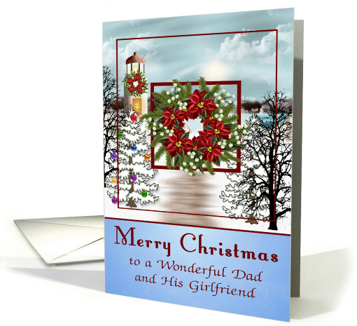 | Artist Notes: | Wish your wonderful dad and his girlfriend a Merry Christmas with a card featuring a lighthouse scene with snow, a Christmas Tree, icy water and mountains against a beautiful blue sky. Design is framed in burgundy lines with snowflakes and burgundy text. Inside like all GCU cards can be personalized by you if you wish to give it your own personal touch. Design by Laurie Schneider/Elements by Digital Designs by Elena/Diana'z Designz |
