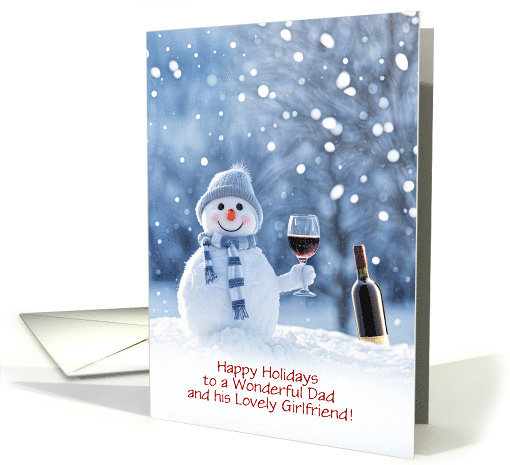 | Title: | Dad and Girlfriend Happy Holidays with Happy Snowman Wine Custom |