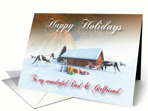 | Title: | Painted Horse and Motorcycles Holidays Snowscene for Dad & Girlfriend |