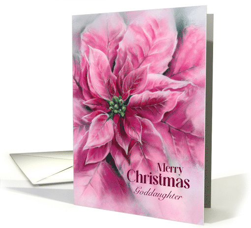 A beautiful way to remember your goddaughter at Christmas, this customizable card is embellished on the cover with seasonal floral art in soft pastel hues depicting a festive poinsettia in pink.