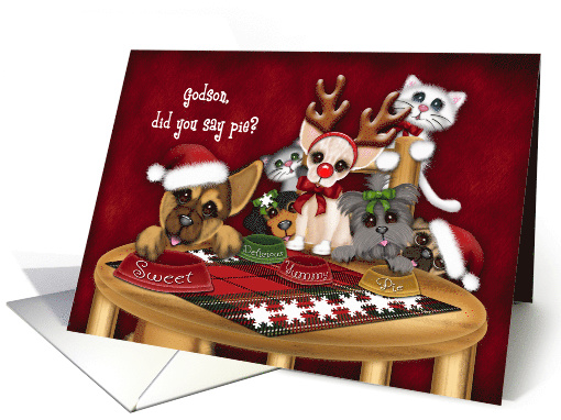 | Title: | Christmas, For a Godson, Puppies, kittens Waiting for Pie |