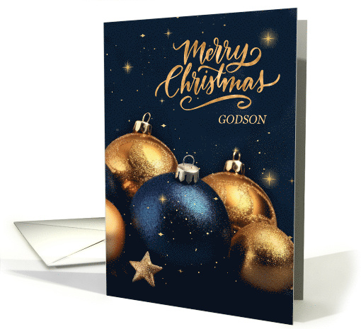 | Artist Notes: | Navy blue blends with warm golden hues on stars, text and ornaments to create a nice card for your Godson on Christmas. |