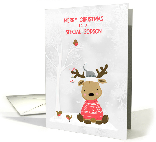 | Title: | For Godson Christmas Reindeer with Birds Snow Scene |