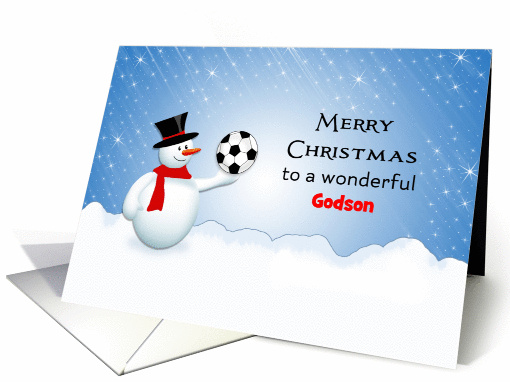 | Title: | For Godson Christmas Snowman Soccer Ball Greeting Card-Custom Text |