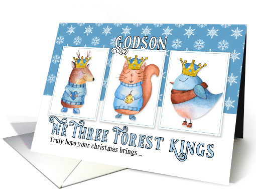 | Artist Notes: | Any young godson will be thrilled to received this cute Christmas greeting from a godparent. He's sure to love the three kings who are actually forest critters wearing crowns. |
