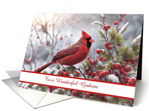 | Title: | Godson Happy Holidays with Cardinal in the Snow Custom Cover Text |