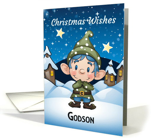 | Title: | Godson Little Christmas Elf Dressed in Blue with Little Houses |