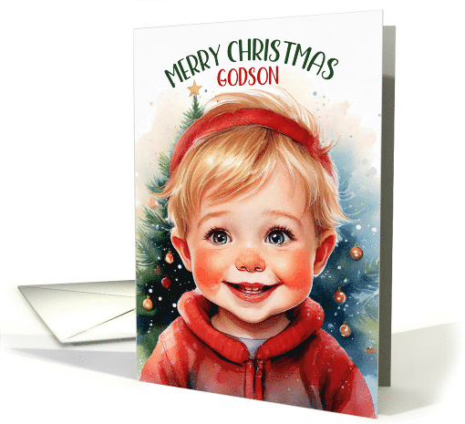 | Artist Notes: | Darling little blond haired baby boy happily awaits Santa's arrival on Christmas and your baby Godson and his family is sure to smile when you send this card. |