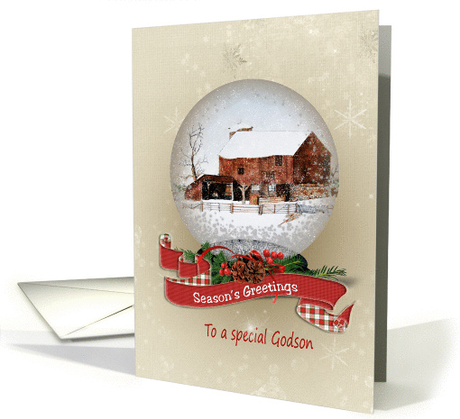 | Title: | Season's Greeting for Godson-snow globe with winter barn |
