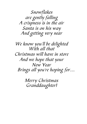 Playful design for a Christmas Card for your Granddaughter ... A Snowflake surrounded by smaller white snowflakes on a red background would be a lovely card choice in cards. You can use the inner verse or add sentiments of your own choice. All card cover designs can be further personalized upon Request to the Artist. ©2014 SmudgeArt