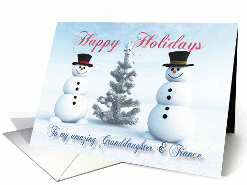 | Artist Notes: | Two snowmen with Christmas tree for your Granddaughter & Fiance. There is inside a text which you can customize to something very personal. |