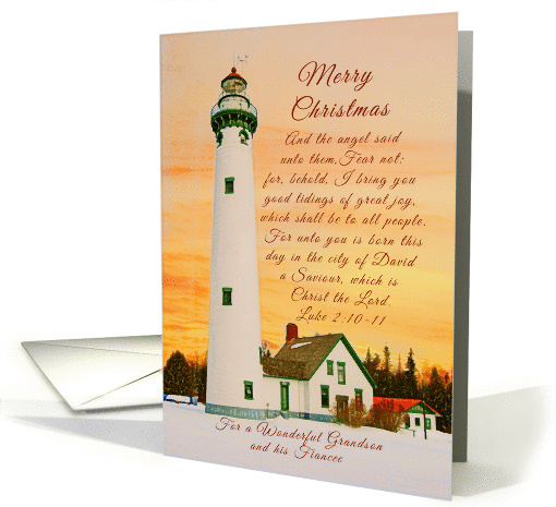| Title: | Merry Christmas, For a Grandson and Fiancee, Lighthouse Winter Scene |