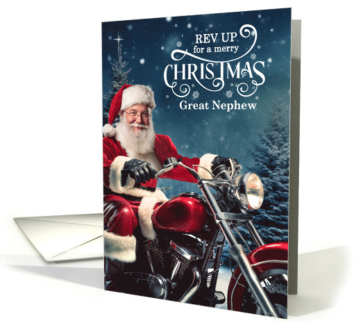 The biker lover who is also your Great Nephew, is sure to enjoy this unique holiday greeting in two-wheel style!