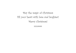 An adorable moose stands behind a Christmas tree while a squirrel, mouse and bear decorate the tree. Three squirrels are peering out from among the tree branches. A sweet reindeer sits in the snow all tangled in Christmas lights. Inside message reads: "May the magic of Christmas fill your heart with love and laughter! Merry Christmas! xxxooo
